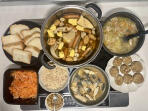 今回は、おでんや豚汁、さばの味噌煮、ハンバーグ、